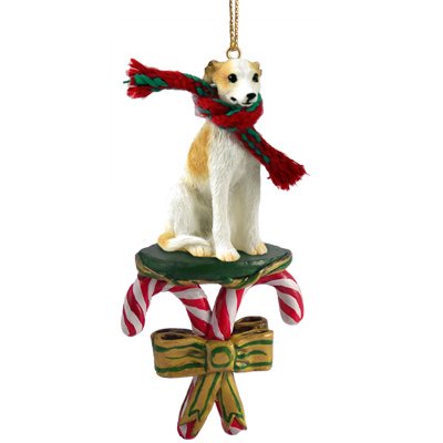 Home > Whippet - Tan and White - Candy Cane Ornament